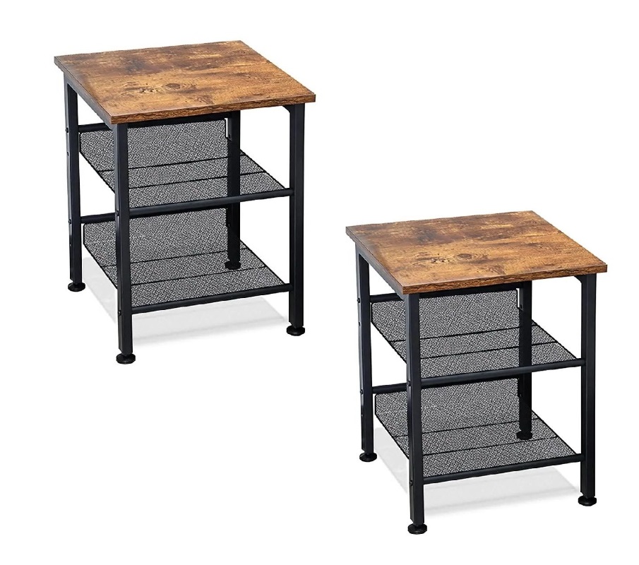3 Tier Office Home Bedroom 2 Set Storage Rustic Coffee Side Table and Night Stand