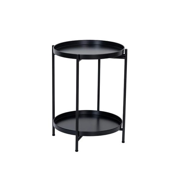 Home Furniture Metal Coffee Snack Side Couch Bed 2-Tier Round Table – Black
