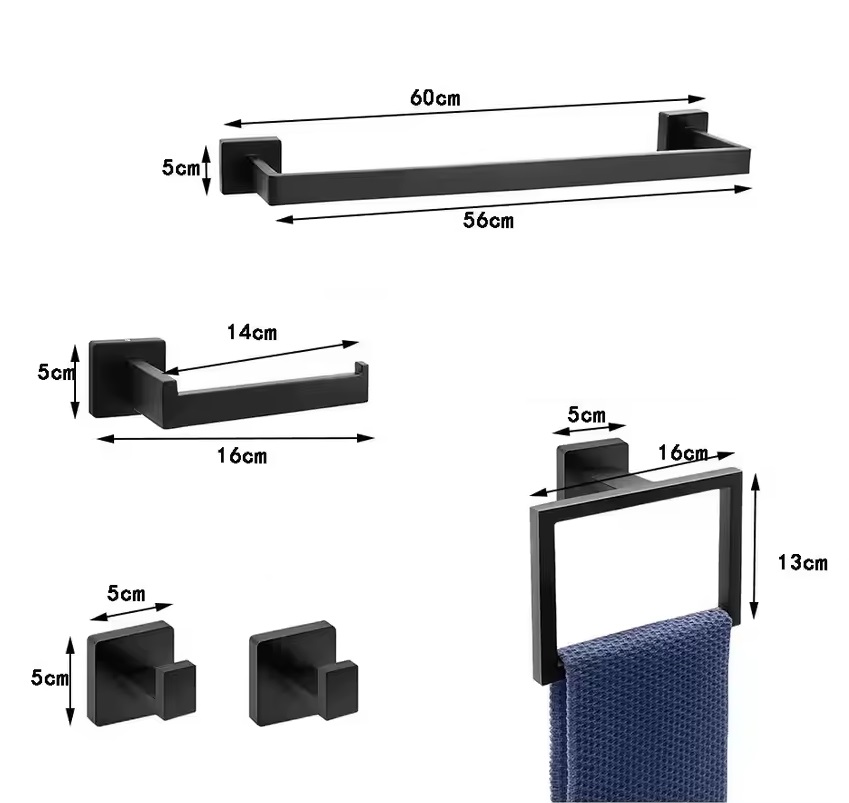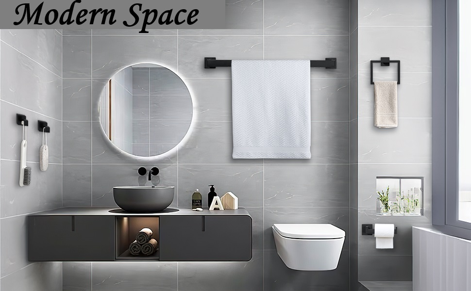 Bathroom Hardware Kit Provides Easy Access And Display Of Towels, towel hooks And Toilet Paper for Your Bathroom. And it Can Match Your Black Shower Faucet And Bathroom Faucet Perfectly.