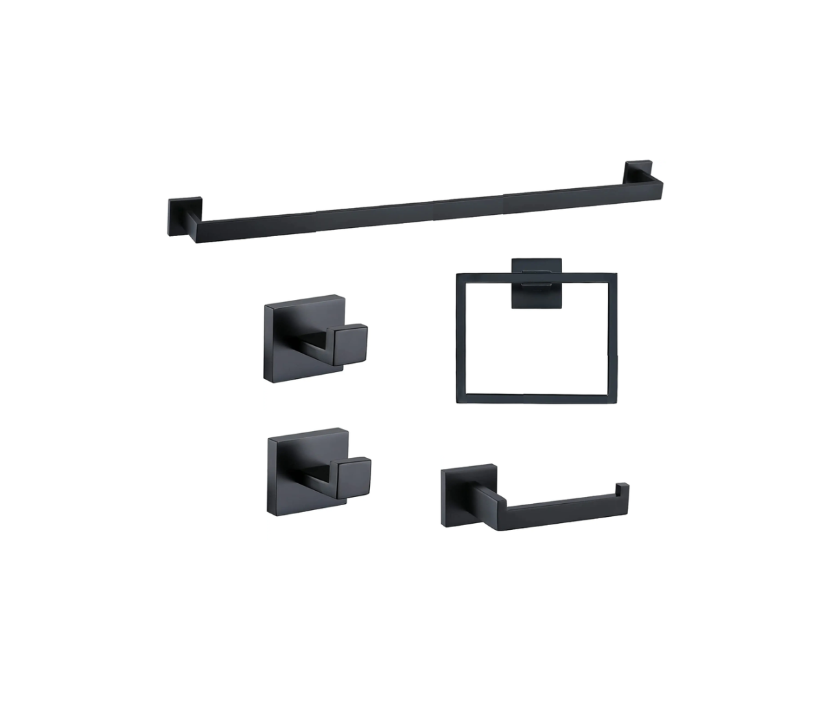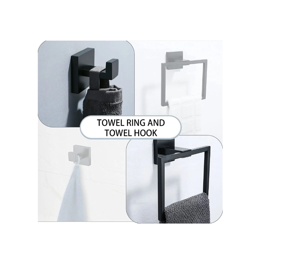 Towel Bar, Towel Ring, Toilet paper holder, 2x Towel Hooks. This Set Combination Will Not Make Products Idle.