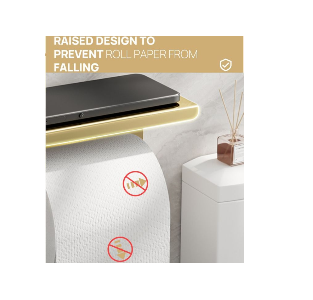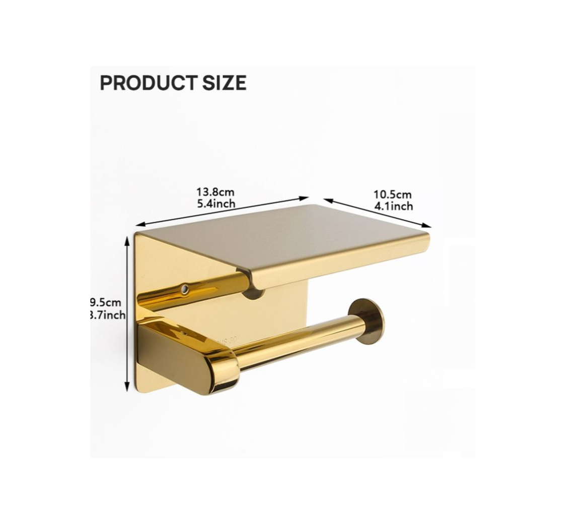 Gold 304 Stainless Steel Chrome Wall Mount Toilet Paper Roll Phone Holder
