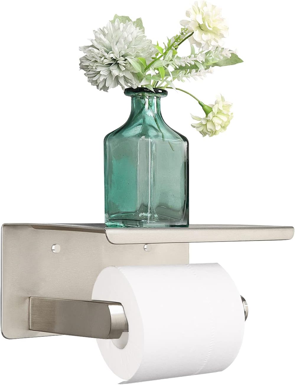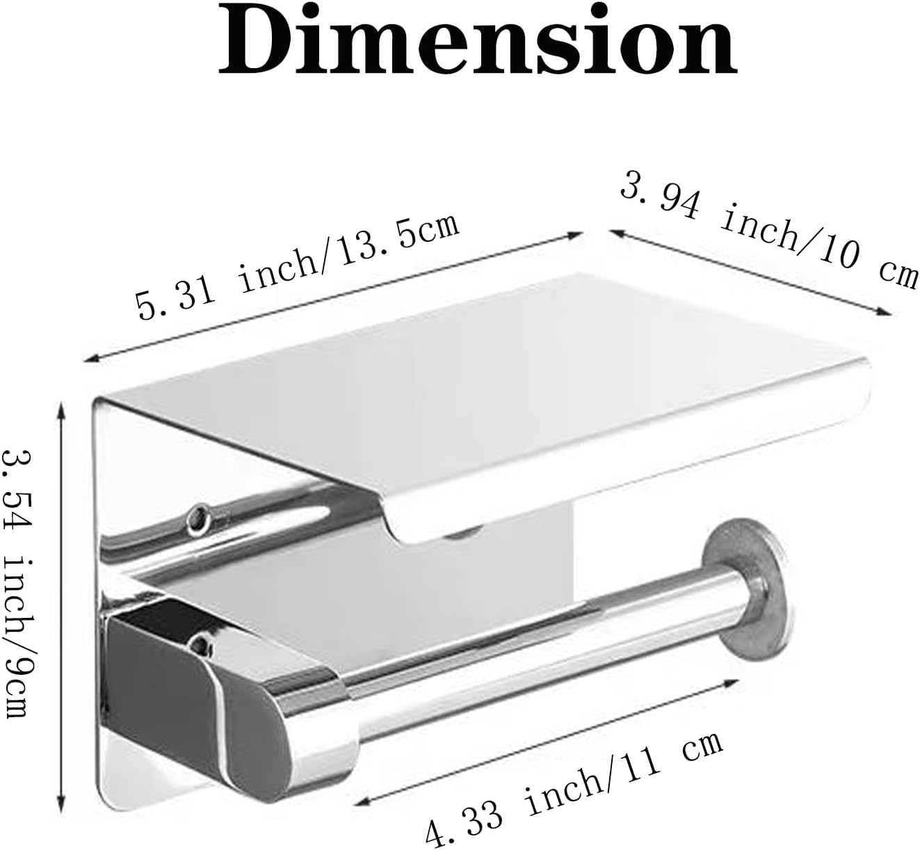 Wall Mount 304 Stainless Steel Toilet Paper Holder with Phone Shelf Bathroom Hotel Schools Spa Accessories