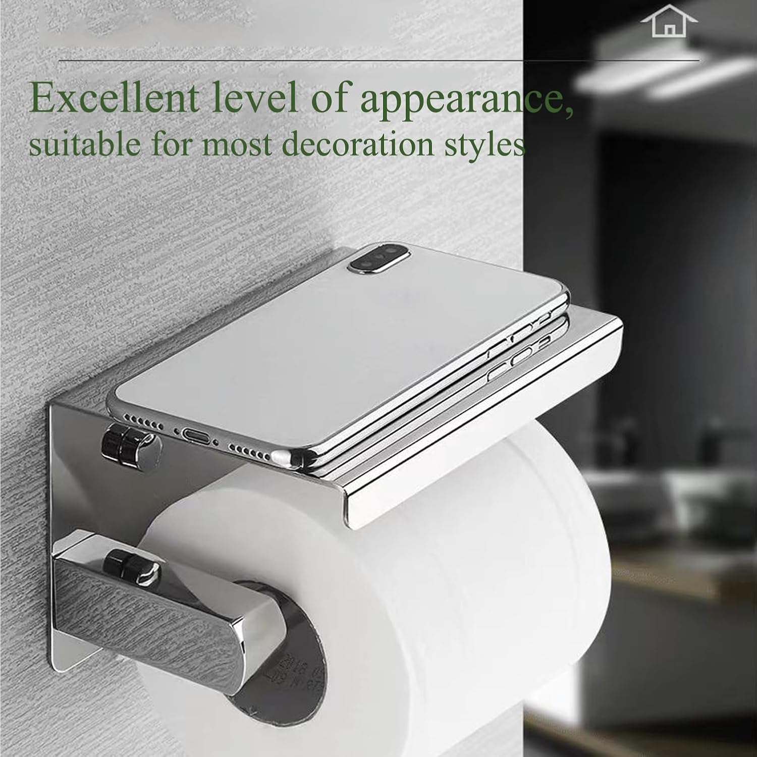 SILVER 304 Stainless Steel Chrome Wall Mount Toilet Paper Roll Phone Holder